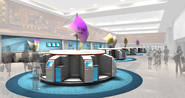 Each check-in island will feature eight self-service check-in stations and passengers will be able to use any one of the 48 kiosks. The airline claims that this could reduce peak period queuing times by up to 75%.