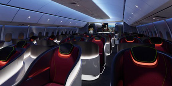 LED lighting will also be used in the 777X cabin, and there will be less cabin noise. Airlines will also be offered more freedom to customise their cabin architectures by class – an adaptable suite of parts will facilitate more choice in terms of overhead ceiling and stow bin configurations.