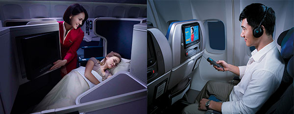 Over the last four years alone, the entire fleet of aircraft has received a cabin upgrade, and numerous lounges across the network have been refurbished. The existing fleet alone highlights the scale of the investment that has been made in a relatively short space of time. The most eye-catching feature is the new Business Class product. Each seat, which converts into a fully flat bed, includes an iPhone and iPod compatible 15.5-inch screen (powered by Panasonic Avionics Corporation), a flat bed seat, ample personal storage space, a privacy screen and even a central cocktail table for those travelling with a companion.