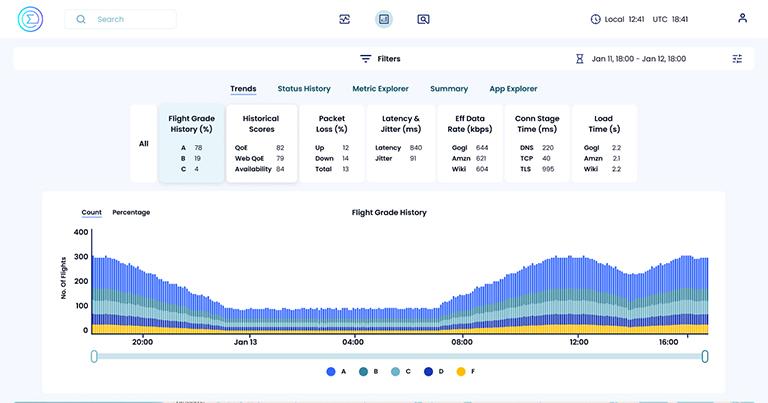 Beyond visibility, Quvia also gives airlines the ability to configure and manage the in-cabin network, troubleshoot issues in real time, and, as multi-link systems evolve, balance traffic intelligently across multiple networks and orbits to keep QoE high from gate to gate.