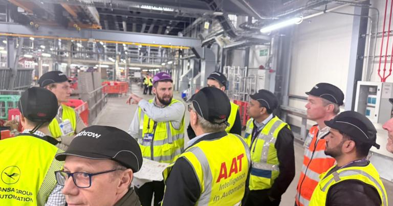 Looking ahead to future innovation, the group was also introduced to emerging automation capabilities, including robotic build cells currently under development within Heathrow’s automation area, as well as assisted loading solutions designed to enhance early bag build processes.